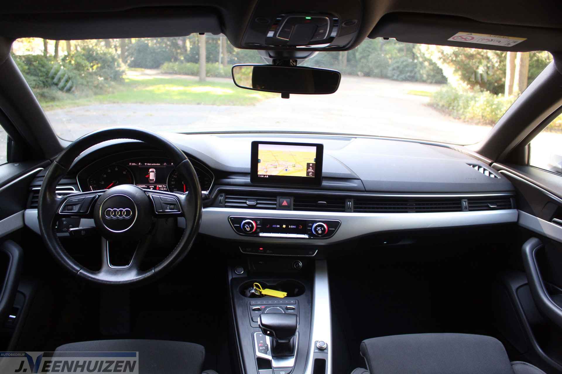 In het zeldzame geval van een storing weet u nog eerder dan de monteur wat er mankeert. Uw smartphone met remote services geeft direct inzicht. Een belangrijke veiligheidsvoorziening is de bediening van het audiosysteem en het full map navigatiesysteem, via knoppen op het stuur en middels spraakbediening. De electronic climate control zorgt voor een behaaglijk klimaat in de auto. U kunt bij het inparkeren natuurlijk niet aan alle kanten ogen hebben. Daarom is deze Audi A4 Avant voorzien van parkeersensoren! Maximumsnelheid? Even de cruise control instellen en u blijft perfect binnen de marges. Deze auto is voorzien van WIFI-hotspot, schakelpaddles aan het stuur, centrale deurvergrendeling met afstandsbediening en boordcomputer.